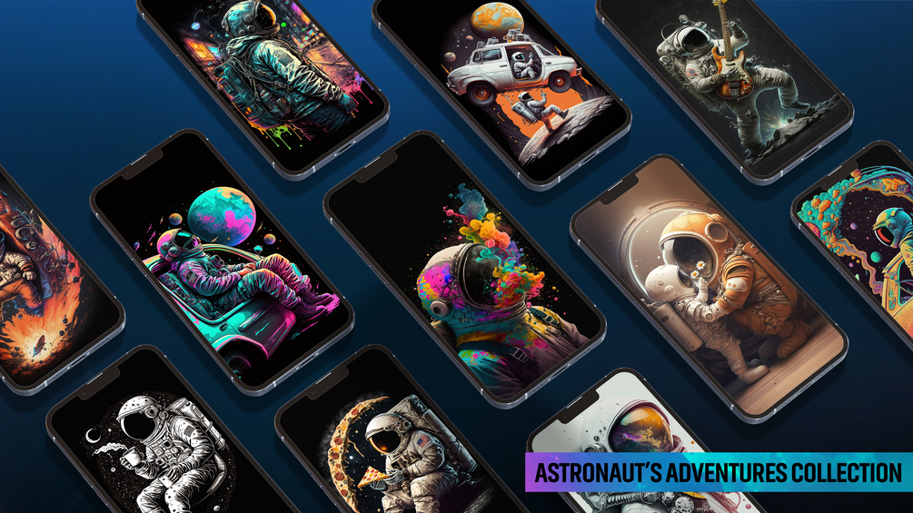 100 high-quality wallpapers of ASTRONAUT'S ADVENTURES in different design. Various wallpapers of astronaut's journey through space & fantasy world.